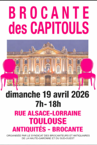 Ce dimanche 19 avril, la rue Alsace Lorraine à Toulouse se transforme en un immense marché aux trésors, de Jeanne d’Arc au square Charles de Gaulle (derrière le Capitole) !